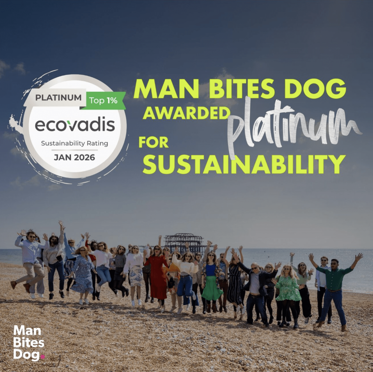 Man Bites Dog has been awarded a Platinum EcoVadis medal, placing us in the top 1% of companies assessed globally for sustainability performance.